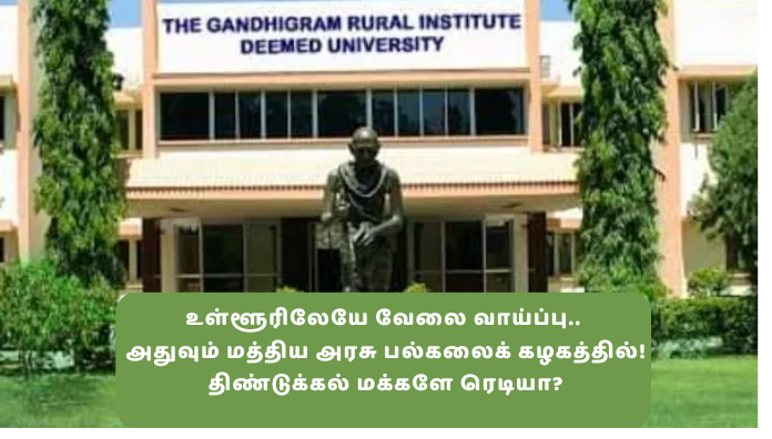 ஊதிய விபரம்: பணிக்கு தேர்வு செய்யப்படும் விண்ணப்பதாரர்களுக்கு விதிகளின் படி ஊதியம் வழங்கப்படும். முகவரி : Centre For home science, indra gandhi block, The Gandhigram Rural Institute, Gandhigram – 624302, Dindigul, Tamil Nadu.