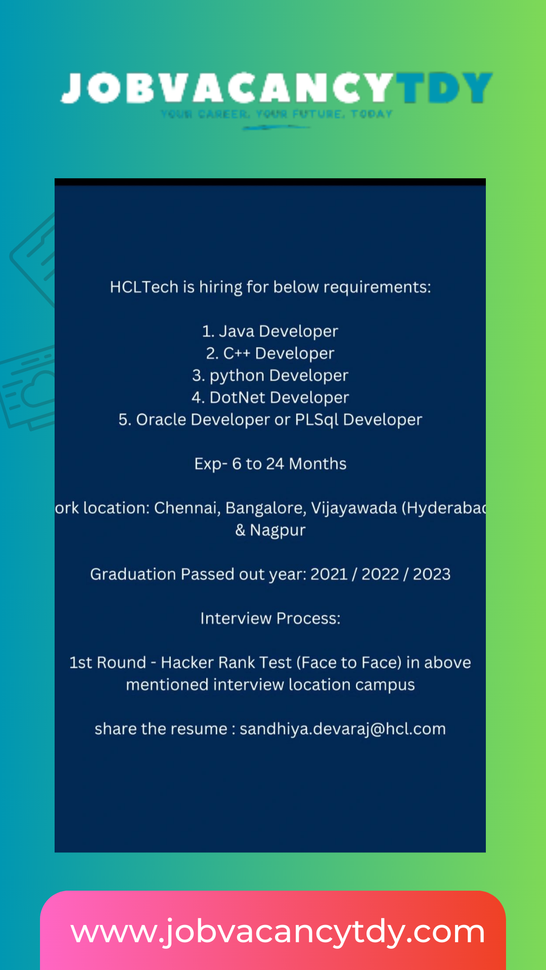 HCL நிறுவனத்தில் சூப்பர் வேலை வாய்ப்பு – இன்றே இண்டர்வியூ!